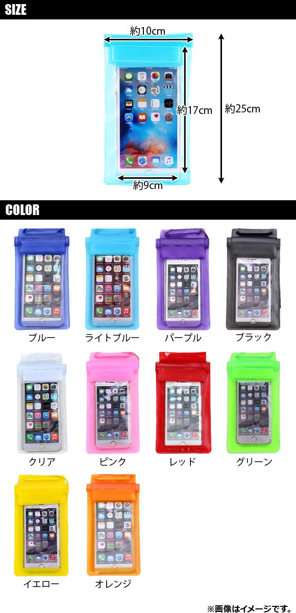 スマートフォン防水ケース 汎用 両面クリア 3層チャック付 水滴からガード! 選べる10カラー AP-TH336 カラー: ブラック レッド ブルー イエロー グリーン オレンジ パープル ピンク クリア ライトブルー
