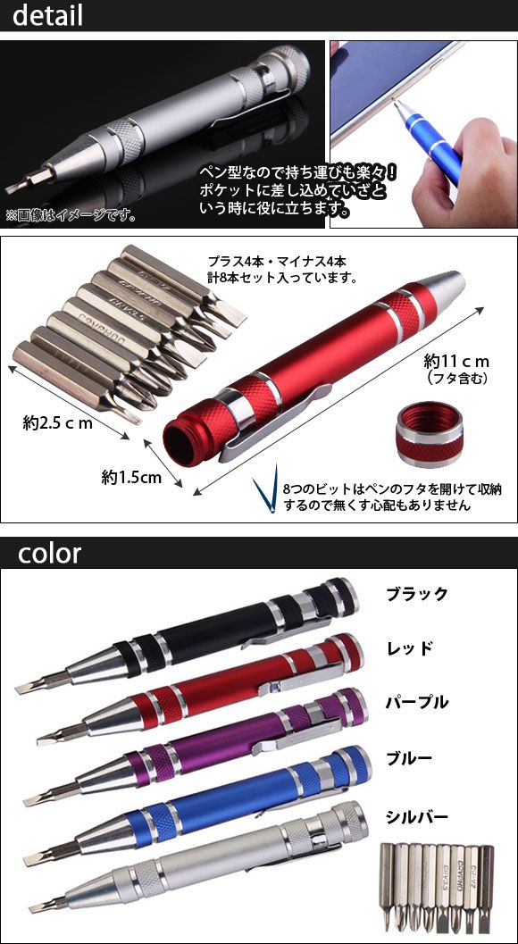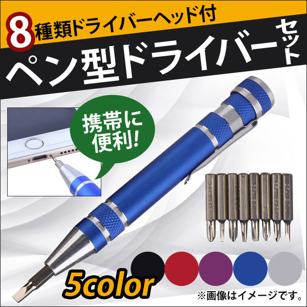 AP 8種類ドライバーヘッド付 ペン型ドライバーセット 工具ペン メタルカラー コンパクトサイズで持ち運びも楽々♪ 選べる5カラー AP-TS003