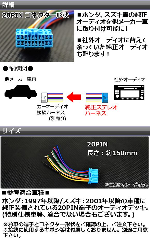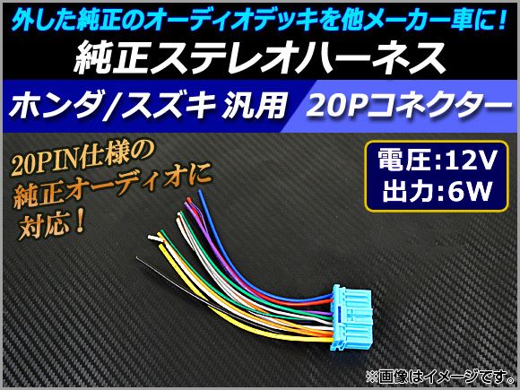 純正ステレオハーネス ホンダ/スズキ汎用 12V/6W 20PIN 逆カプラー 純正デッキの流用に! AP-EC040