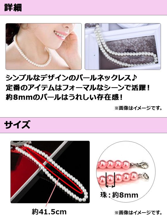 パールネックレス 約8mm珠 フェイク エレガントな定番アイテム♪ 選べる3カラー AP-TH335