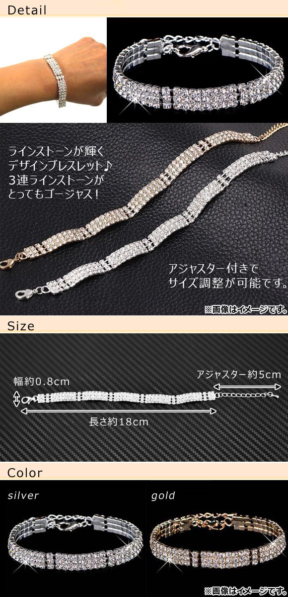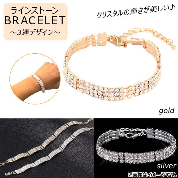 AP ラインストーンブレスレット 3連デザイン クリスタル アジャスター付きで調整可能 選べる2カラー AP-TH498 カラー: ゴールド シルバー