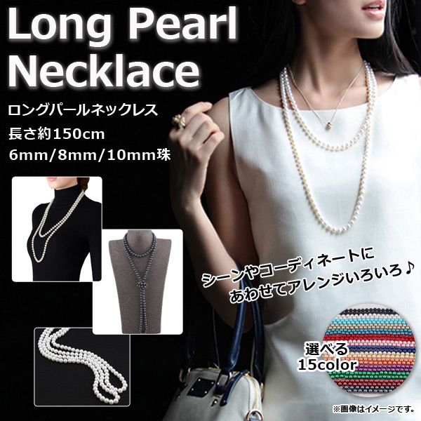 ロングパールネックレス 約150cm パールビーズ 留具なし シーンやコーディネートにあわせてアレンジいろいろ! 選べる15カラー 選べる3サイズ AP-UJ0199-150
