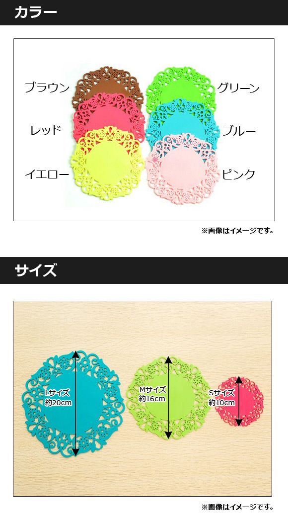 コーヒーカップコースターや鍋敷きなどに対応する各種サイズとをご用意♪