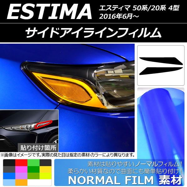 サイドアイラインフィルム ノーマルタイプ トヨタ エスティマ 50系/20系 4型 2016年06月〜 選べる14カラー 入数:1セット(2枚) AP-YLNM189 カラー: ブラック レッド ブルー イエロー グリーン オレンジ パープル ピンク マットブラック ライトイエロー ライトグリーン ライトブルー ライトブラック イエローグリーン