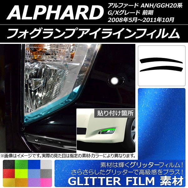 フォグランプアイラインフィルム グリッタータイプ トヨタ アルファード ANH/GGH20系 G/Xグレード 前期 選べる12カラー 入数:1セット(2枚) AP-YLGL198 カラー: ブラック ホワイト レッド ブルー イエロー グリーン オレンジ パープル ピンク ライトイエロー ライトブルー ライトブラック