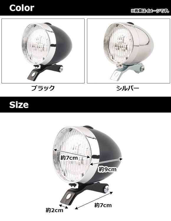 LEDヘッドライト 自転車用 砲弾型 クラシカルなデザインでオシャレ♪ 選べる2カラー AP-UJ0559 カラー: ブラック シルバー