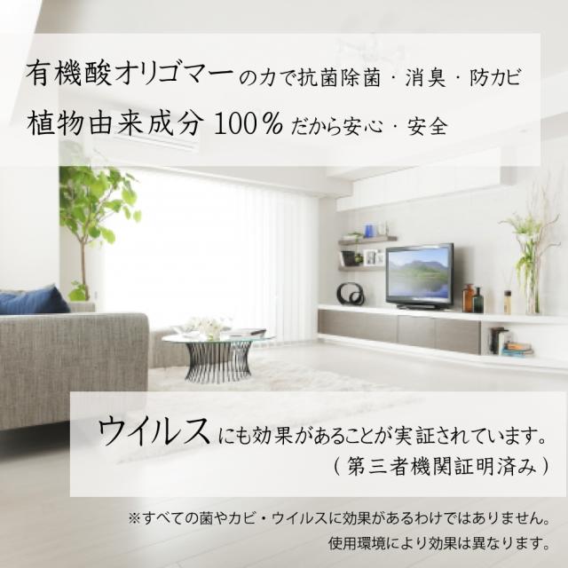 有機酸オリゴマーの力で抗菌・除菌・消臭・防カビ対策ができます。