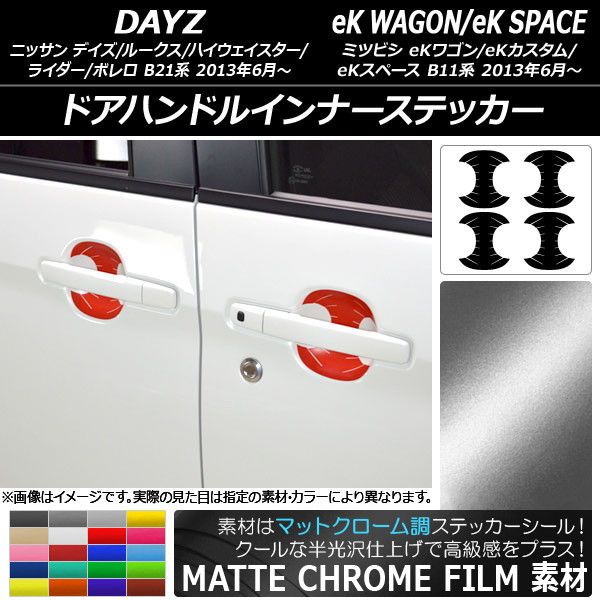 ドアハンドルインナーステッカー マットクローム調 デイズ/デイズルークス/eKワゴン/eKカスタム/eKスペース 選べる20カラー 入数:1セット(4枚) AP-MTCR3602