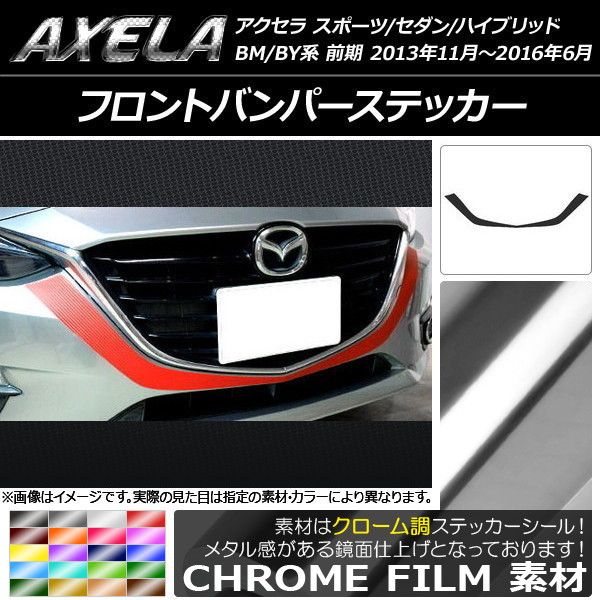 フロントバンパーステッカー マツダ アクセラ スポーツ/セダン/ハイブリッド BM系/BY系 クローム調 選べる20カラー AP-CRM1426