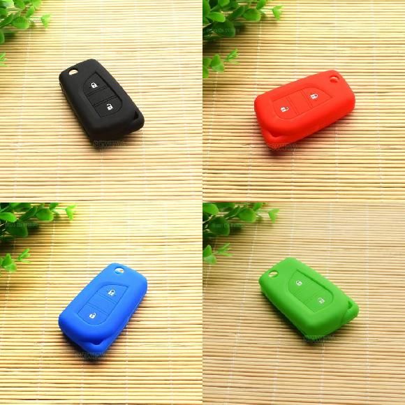 キーカバー シリコン キー フォブ カバー ケース シェル ホルダー 適用: トヨタ カローラ アベンシス プラド フォーチュナ RAV4 折りたたみ フリップ 2 2ボタン リモート 保護 ブラック〜グリーン AL-II-4755 AL