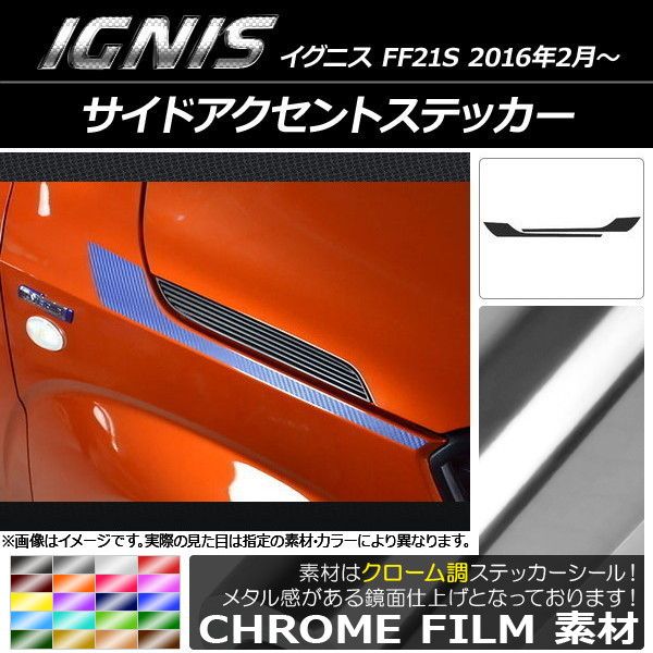 サイドアクセントステッカー スズキ イグニス FF21S 2016年2月〜 クローム調 選べる20カラー AP-CRM1641 入数:1セット(2枚)