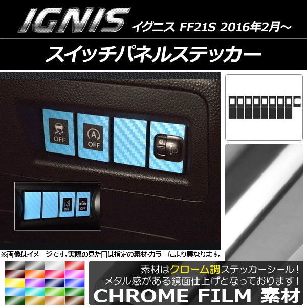スイッチパネルステッカー クローム調 スズキ イグニス FF21S 2016年2月〜 選べる20カラー 入数:1セット(17枚) AP-CRM1608