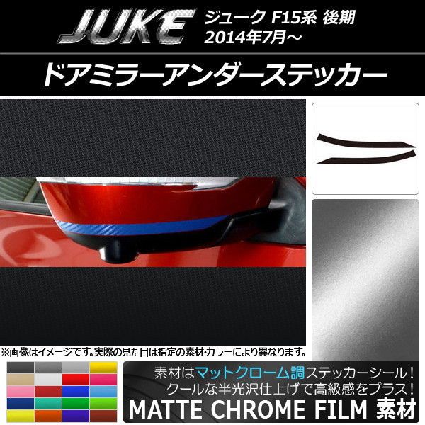 ドアミラーアンダーステッカー マットクローム調 ニッサン ジューク F15系 後期 選べる20カラー 入数:1セット(2枚) AP-MTCR1827