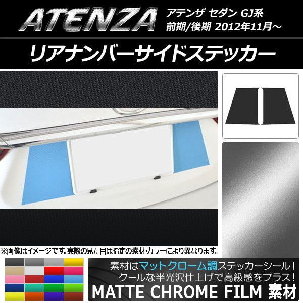 リアナンバーサイドステッカー マットクローム調 マツダ アテンザセダン GJ系 前期/後期 選べる20カラー 入数:1セット(2枚) AP-MTCR1695 カラー: ブラック ホワイト レッド ブルー イエロー グリーン オレンジ パープル ピンク ネイビー ブラウン ボルドー ゴールド シルバー ガンメタリック マゼンタ ライトグリーン ライトブルー ライトゴールド シアン