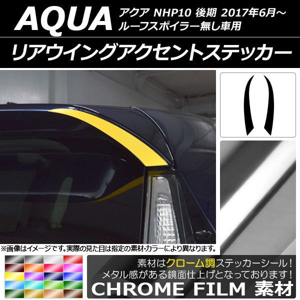 リアウイングアクセントステッカー クローム調 トヨタ アクア NHP10 後期 ルーフスポイラー無し車用 選べる20カラー 入数:1セット(2枚) AP-CRM3365