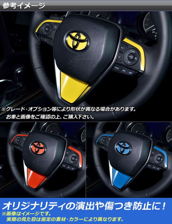 ステアリングステッカーセット クローム調 トヨタ カムリ AXVH70 2017年07月〜 選べる20カラー AP-CRM3148 カラー: ブラック ホワイト レッド ブルー イエロー グリーン オレンジ パープル ピンク ネイビー ブラウン ボルドー ゴールド シルバー マゼンタ ダークグリーン ライトグリーン ライトブルー ローズゴールド シアン