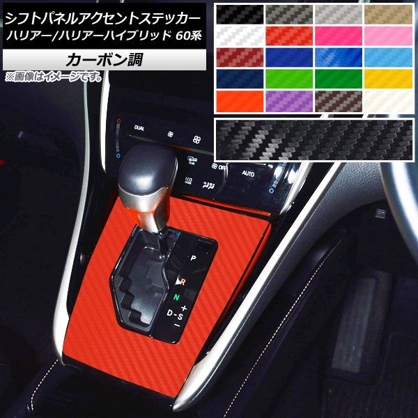 シフトパネルアクセントステッカー カーボン調 トヨタ ハリアー/ハリアーハイブリッド 60系 2013年12月〜2020年05月 選べる20カラー AP-CF4179 カラー: ブラック ホワイト レッド ブルー イエロー グリーン オレンジ パープル ピンク ネイビー ブラウン ボルドー クリア ゴールド シルバー ガンメタリック マゼンタ ダークグリーン メタリックブルー ライトブルー