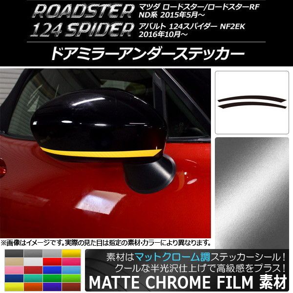 ドアミラーアンダーステッカー マットクローム調 マツダ/アバルト ロードスター/RF/124スパイダー 選べる20カラー 入数:1セット(2枚) AP-MTCR2415