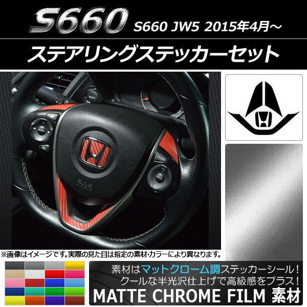 ステアリングステッカーセット マットクローム調 ホンダ S660 JW5 2015年04月〜 選べる20カラー AP-MTCR2071 カラー: ブラック ホワイト レッド ブルー イエロー グリーン オレンジ パープル ピンク ネイビー ブラウン ボルドー ゴールド シルバー ガンメタリック マゼンタ ライトグリーン ライトブルー ライトゴールド シアン