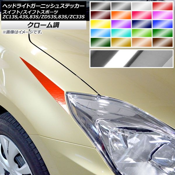 AP ヘッドライトガーニッシュステッカー クローム調 スイフト(スポーツ) ZC13S/ZC43S/ZC83S/ZD53S/ZD83S/ZC33S 選べる20カラー AP-CRM3882 入数:1セット(2枚)