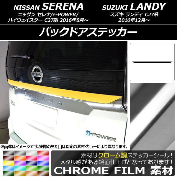 バックドアステッカー ニッサン/スズキ セレナ/e-POWER/ハイウェイスター/ランディ C27系 クローム調 選べる20カラー AP-CRM3837