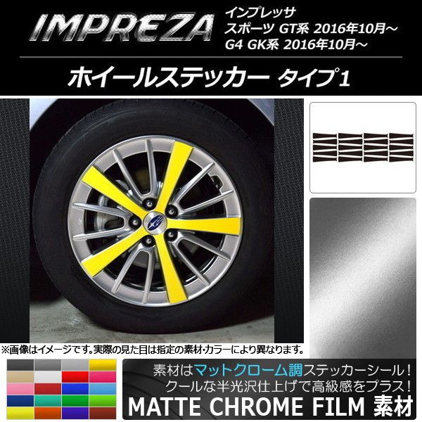 ホイールステッカー スバル インプレッサ スポーツ/G4 GT/GK系 2016年10月〜 マットクローム調 タイプ1 選べる20カラー AP-MTCR2053 入数:1セット(20枚)