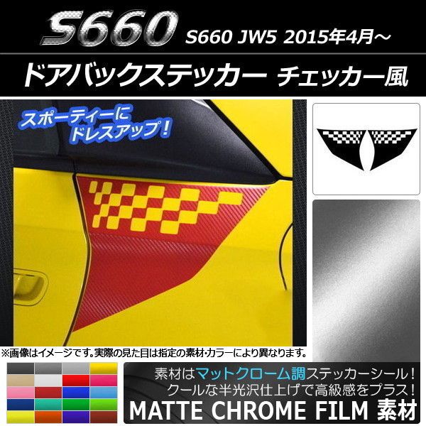 ドアバックステッカー ホンダ S660 JW5 2015年04月〜 マットクローム調 チェッカー風 選べる20カラー AP-MTCR2064 入数:1セット(2枚)