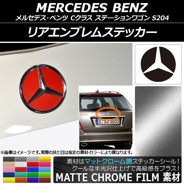 リアエンブレムステッカー マットクローム調 メルセデス・ベンツ Cクラス ステーションワゴン S204 2008年04月〜2014年10月 選べる20カラー AP-MTCR2618