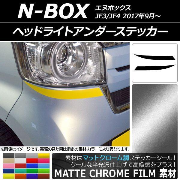 ヘッドライトアンダーステッカー ホンダ N-BOX JF3/JF4 2017年09月〜 マットクローム調 選べる20カラー AP-MTCR2827 入数:1セット(2枚)