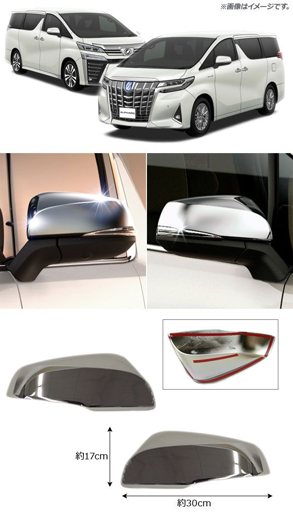 ドアミラーカバー トヨタ アルファード/ヴェルファイア 30系 AGH30,GGH35,AGH35,GGH30 2015年01月〜 鏡面シルバー ABS樹脂製 入数:1セット(左右) AP-DM129