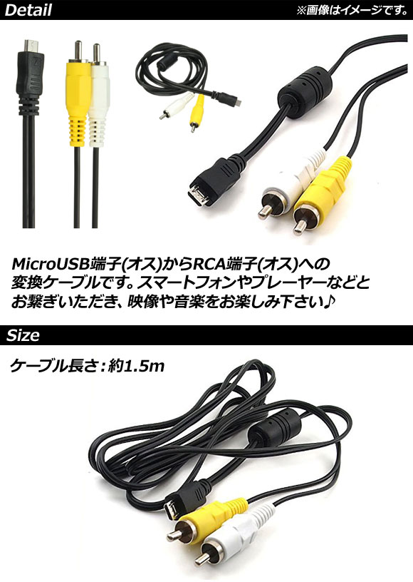 MicroUSB変換ケーブル RCA端子 1.5m オス-オス AP-UJ0480