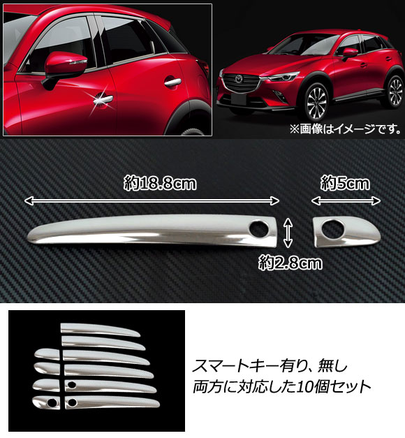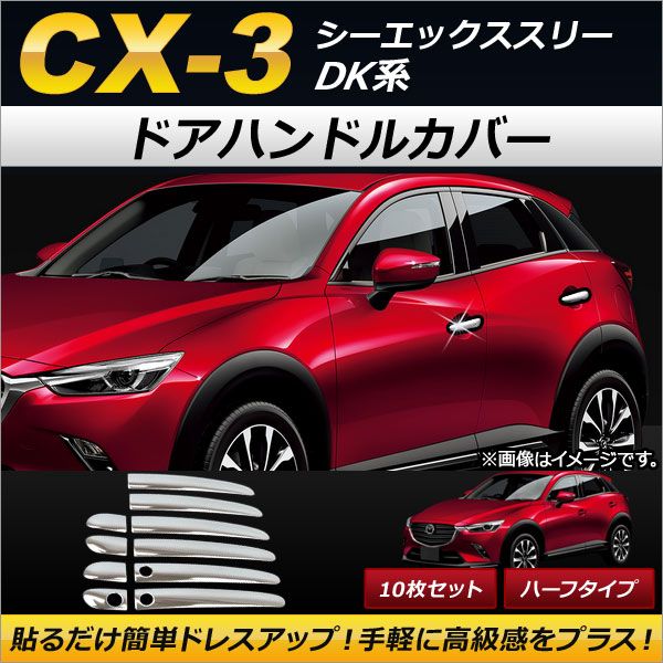 ドアハンドルカバー マツダ CX-3 DK系(DK5FW,DK5AW) スマートキー有無両対応 2015年02月〜 ハーフタイプ ステンレス製 AP-XT185 入数:1セット(10個)