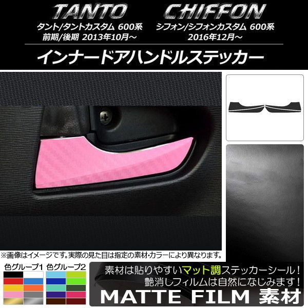 インナードアハンドルステッカー マット調 ダイハツ/スバル タント/カスタム,シフォン/カスタム 600系 色グループ1 AP-CFMT937 色グループ1: ブラック ホワイト レッド ブルー イエロー オレンジ ピンク グレー ゴールド シルバー