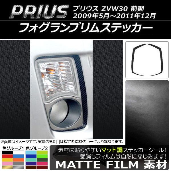 フォグランプリムステッカー トヨタ プリウス ZVW30 前期 2009年05月〜2011年12月 マット調 色グループ2 AP-CFMT195 入数:1セット(2枚)