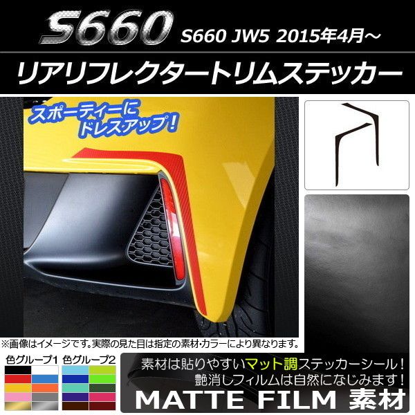 リアリフレクタートリムステッカー ホンダ S660 JW5 2015年04月〜 マット調 色グループ2 AP-CFMT1975 入数:1セット(2枚)