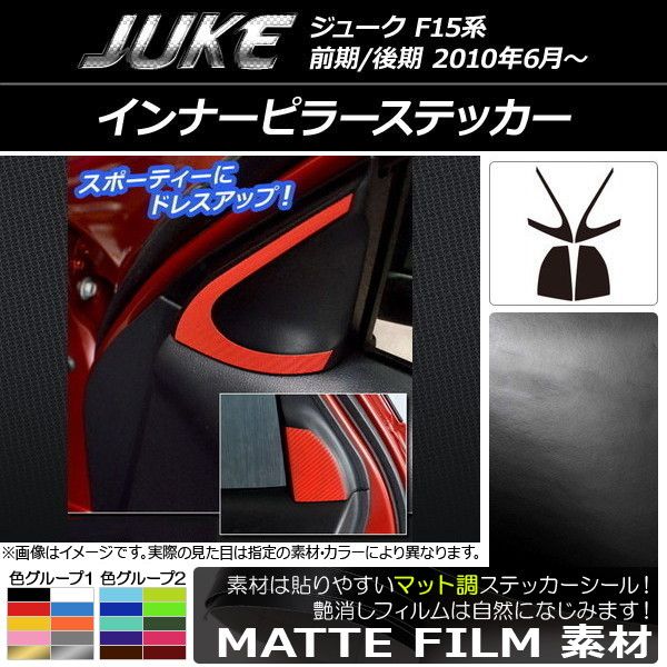 インナーピラーステッカー マット調 ニッサン ジューク F15系 前期/後期 色グループ2 入数:1セット(4枚) AP-CFMT1869