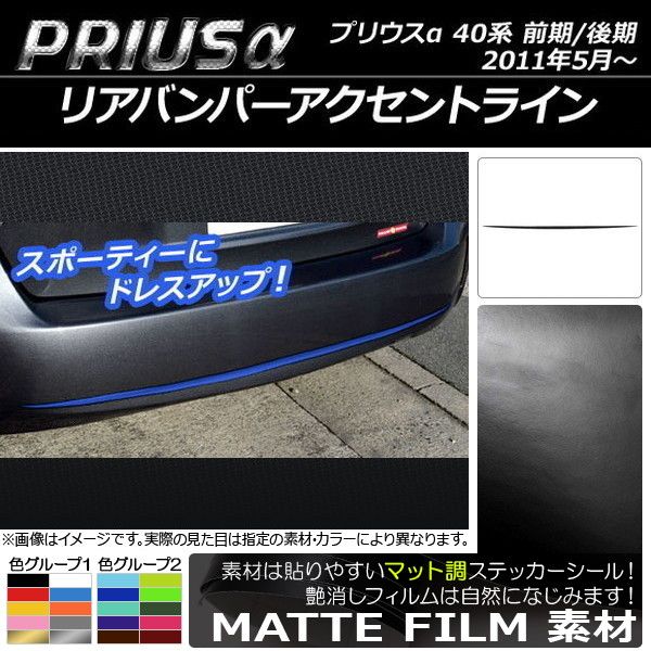 リアバンパーアクセントラインステッカー トヨタ プリウスα ZVW40/ZVW41 前期/後期 2011年05月〜 マット調 色グループ2 AP-CFMT250