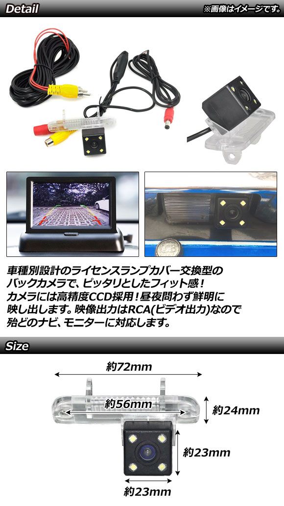 CCDバックカメラ メルセデス・ベンツ CLKクラス W209 2002年04月〜2008年01月 4LED ライセンスランプカバー交換型 AP-EC340