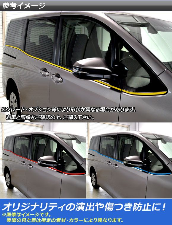 サイドウインドウラインステッカー マット調 トヨタ ヴォクシー/ノア/エスクァイア 80/85系 色グループ1 入数:1セット(8枚) AP-CFMT4133 色グループ1: ブラック ホワイト レッド ブルー イエロー オレンジ ピンク グレー ゴールド シルバー