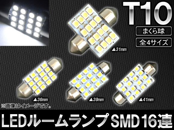 AP LEDルームランプ T10 SMD 16連 選べる4サイズ AP-SINA-LED009