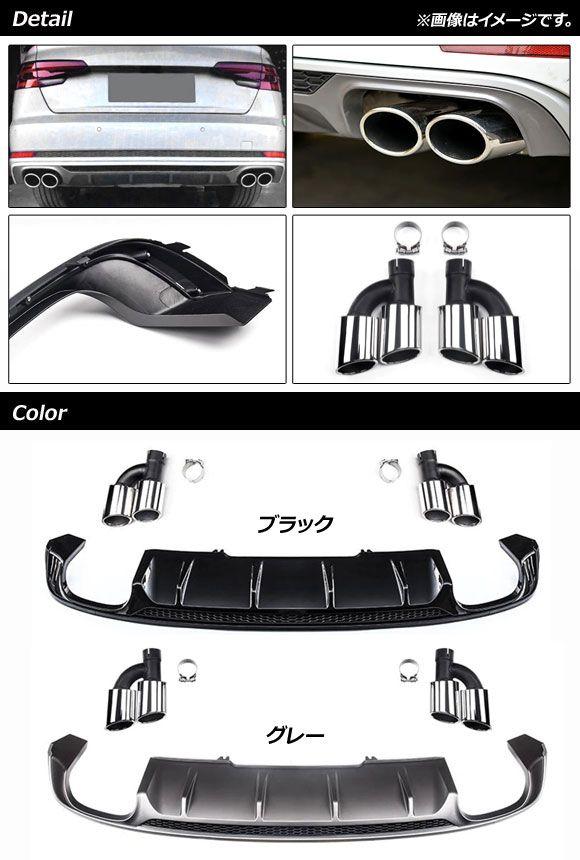 ディフューザー&マフラーカッターセット アウディ A4/S4 B9 Sライン 2016年〜2018年 グレー ABS樹脂製 AP-XT1236-GY