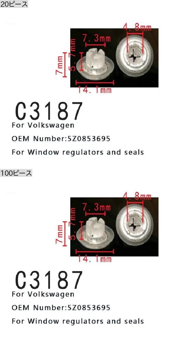 シール ファスナー 5Z0853695 適用: VW AMEO アルテオン ビートル カブリオ キャディ パサート CC イオス FOX ジェッタ ポロ セアト シュコダ ウインドウ レギュレーター クリップ 20ピース AL-MM-0696 AL