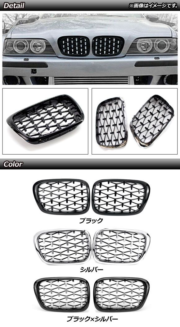 AP フロントグリルカバー ブラック×シルバー ABS製 AP-FG326-BKSI 入数:1セット(2個) BMW 5シリーズ E39 4ドア車用 1996年〜2004年 ダイヤモンド型グリル フロントグリルガーニッシュ バンパーグリルカバー バンパーグリルガーニッシュ グリルガーニッシュ グリルカバー バンパーガーニッシュ フロントグリル フロント フロントフェイス グリル バンパー カバー フレーム フィン ガーニッシュ リム トリム ベゼル メッキ メッキパーツ プロテクト プロテクター 傷予防 傷付き防止 外装 外装パーツ パーツ エクステリア ドレスアップ カスタム カスタマイズ 装飾 装飾パーツ ABS ABS樹脂 黒 black 銀 silver ブラック シルバー chrome クローム