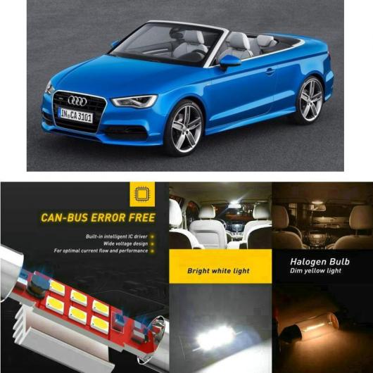AL LED 車用 内装 ライト 適用: アウディ/AUDI A3 コンバーチブル 8V7 8VE カブリオ リア トランク グローブ ボックス バニティミラー ライト エラーフリー T10 8ピース ホワイト AL-JJ-2187