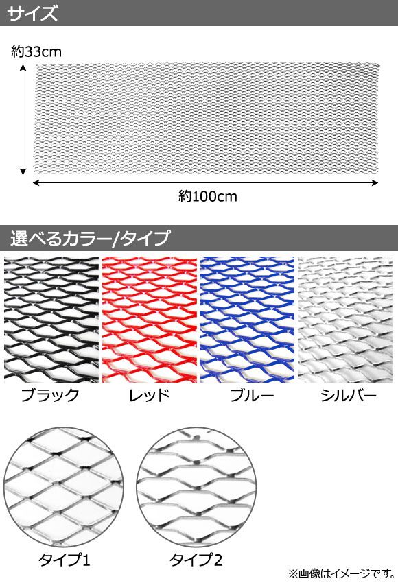 アルミメッシュグリル 100cm×33cm 汎用 取り付け場所に合わせて自在にカット可能! 選べる4カラー 選べる2タイプ AP-XT150 カラー: ブラック レッド ブルー シルバー