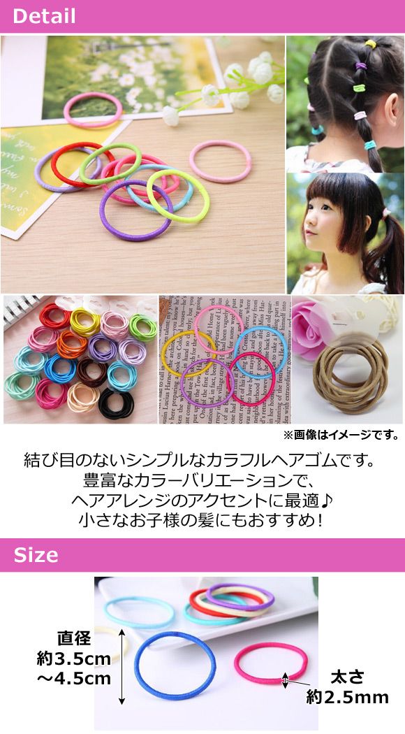 AP ヘアゴム 約50個 結び目のないリングゴム ヘアアレンジのアクセントに♪ カラーグループ2 AP-AR131-50