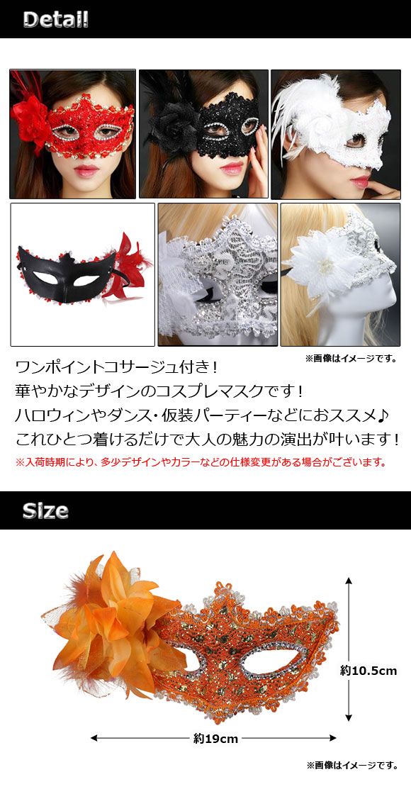ワンポイントコサージュ付き!華やかなデザインのコスプレマスクです!