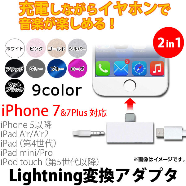 AP iPhone/iPad/iPod用変換アダプタ 2in1 iPhone7/7Plusなど MicroUSB&3.5mmステレオミニ出力 選べる9カラー AP-TH369 カラー: ブラック ホワイト ブルー ピンク グレー ゴールド シルバー ローズ マットブラック