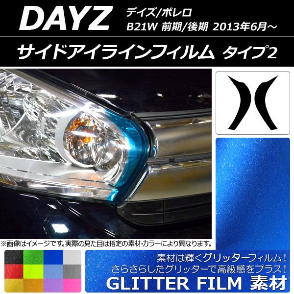 サイドアイラインフィルム グリッタータイプ タイプ2 ニッサン デイズ/ボレロ B21W 前期/後期 2013年06月〜 選べる12カラー 入数:1セット(2枚) AP-YLGL110