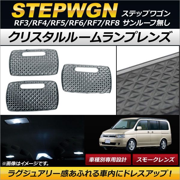クリスタルルームランプレンズ ホンダ ステップワゴン RF3/RF4/RF5/RF6/RF7/RF8 サンルーフ無し スモーク AP-RU081-SM 入数:1セット(3個)